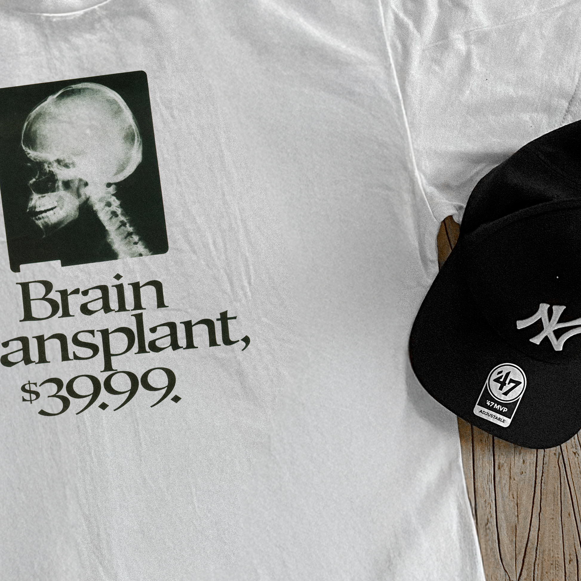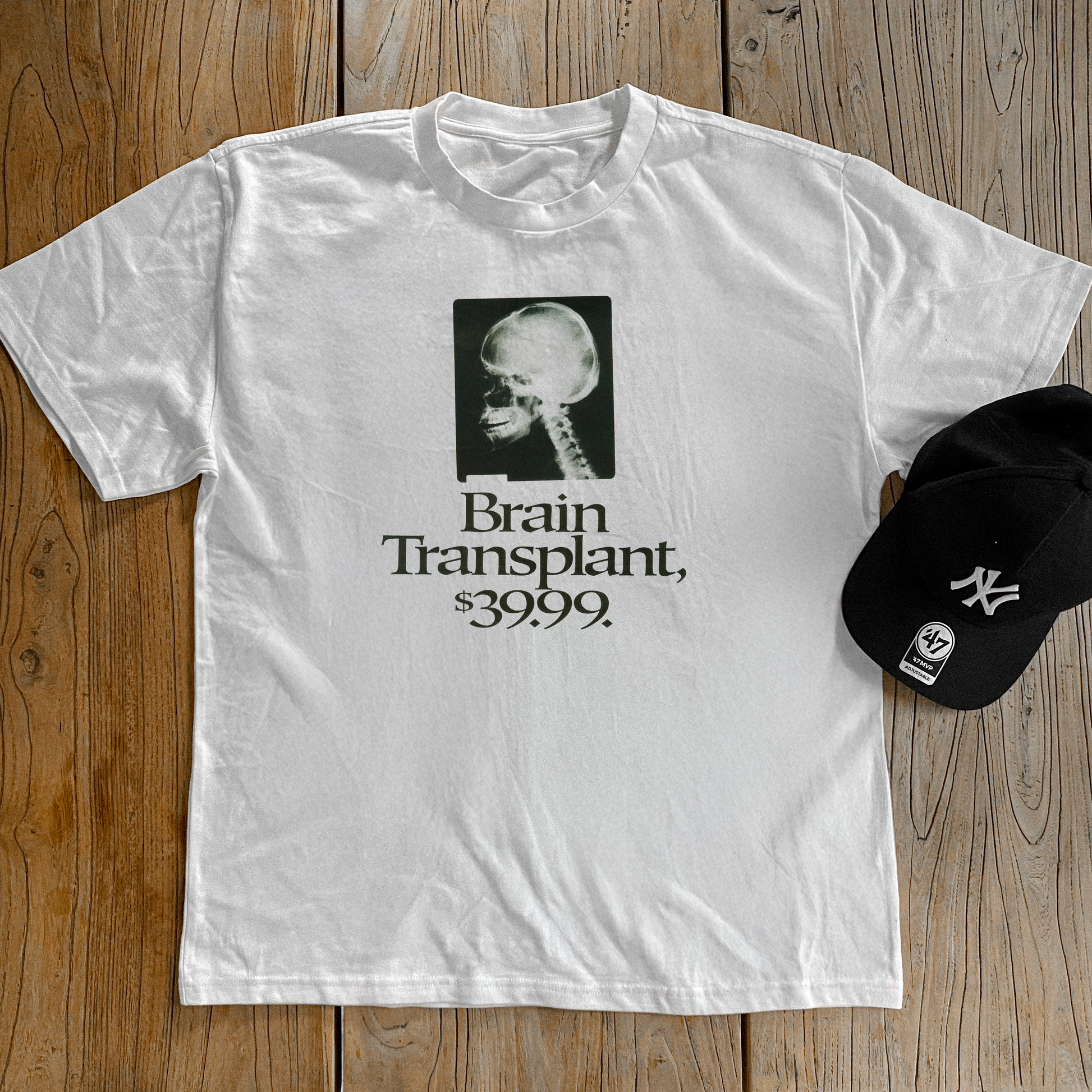 'BRAIN TRANSPLANT' WHITE HEAVYWEIGHT T-SHIRT