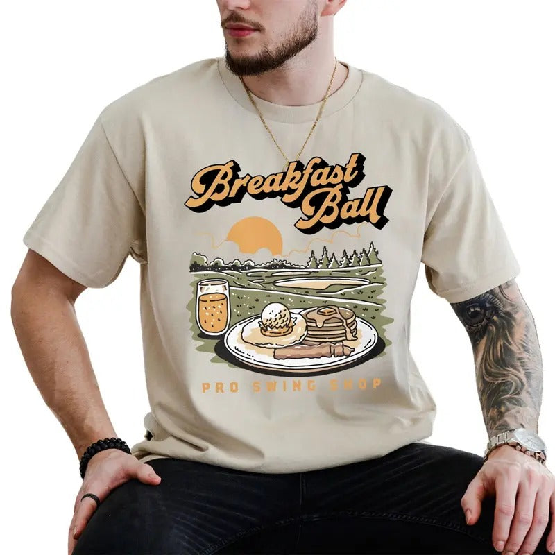 Breakfast Ball T-Shirt, Funny Golf Shirt, Soft Cotton Fabric, Unisex Casual Tee, Golfer Gift, Comfortable Everyday Wear