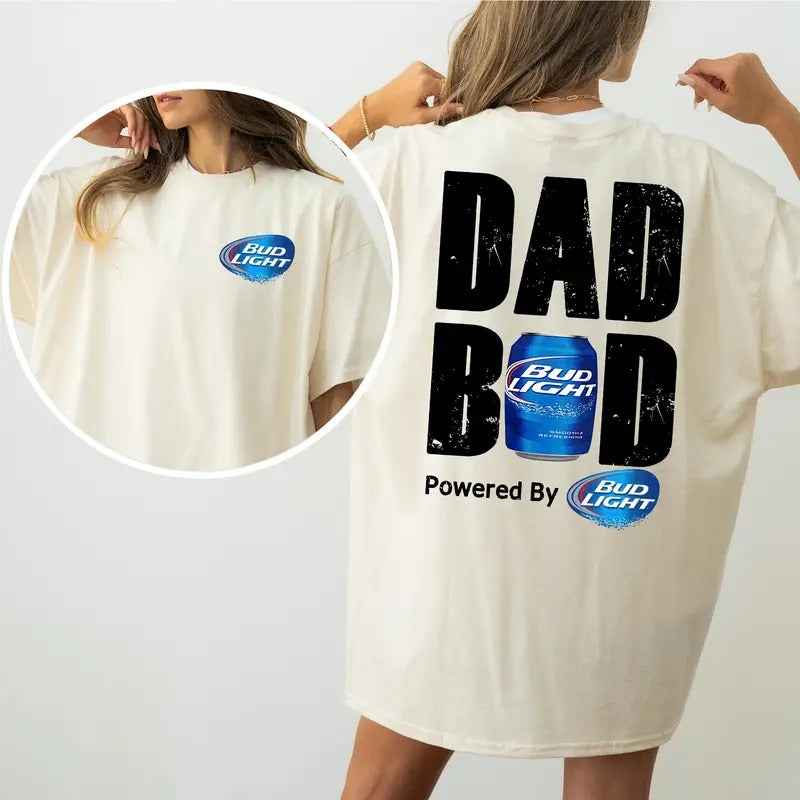 Bud Light Dad Bod Powered By Bud Light T-Shirt, Beer Lover Shirt, Unisex Graphic Tee, Perfect for Casual Wear, Funny Drinking Shirt