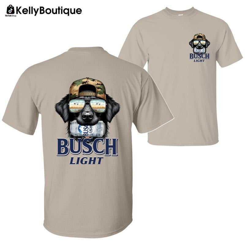 Busch Light Black Retriever Hunting Dog Biting a Busch Beer Can 2 Sided Graphic Printed Unisex Classic Cotton T-Shirt Menswear Top