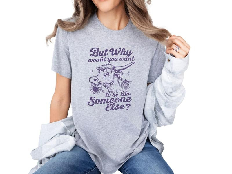 But Why Would You Want to Be Like Someone Else Graphic Tees for Women, Positive Affirmation Shirt for Women, Unisex Sizing Positivity Women's Top -Shirt & Sweatshirt, Cow Lover T-Shirt