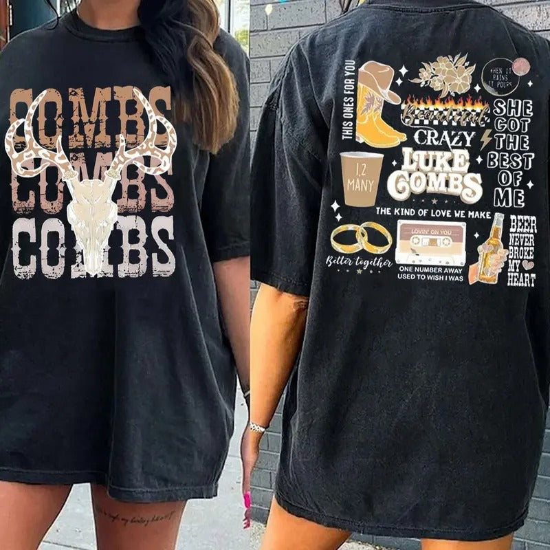 C0mbs Bullhead 2 Sides T Shirt, Country C0mbs Music Shirt, World Tour Apparel, Vintage Western Tee, Unisex Short Sleeve Tee Shirt