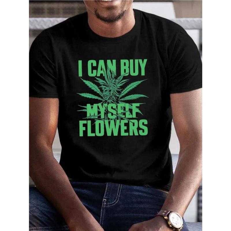 Cannabis Flowers Graphic Print for Men Couple Fashion T-Shirt, Street Short Sleeve Cotton T-Shirt, Comfort-Fit Crew Neck T-Shirt - Ultra-Soft, Breathable, Moisture-Wicking, Casual Summer Tee - Perfect for Everyday Wear Made in USA