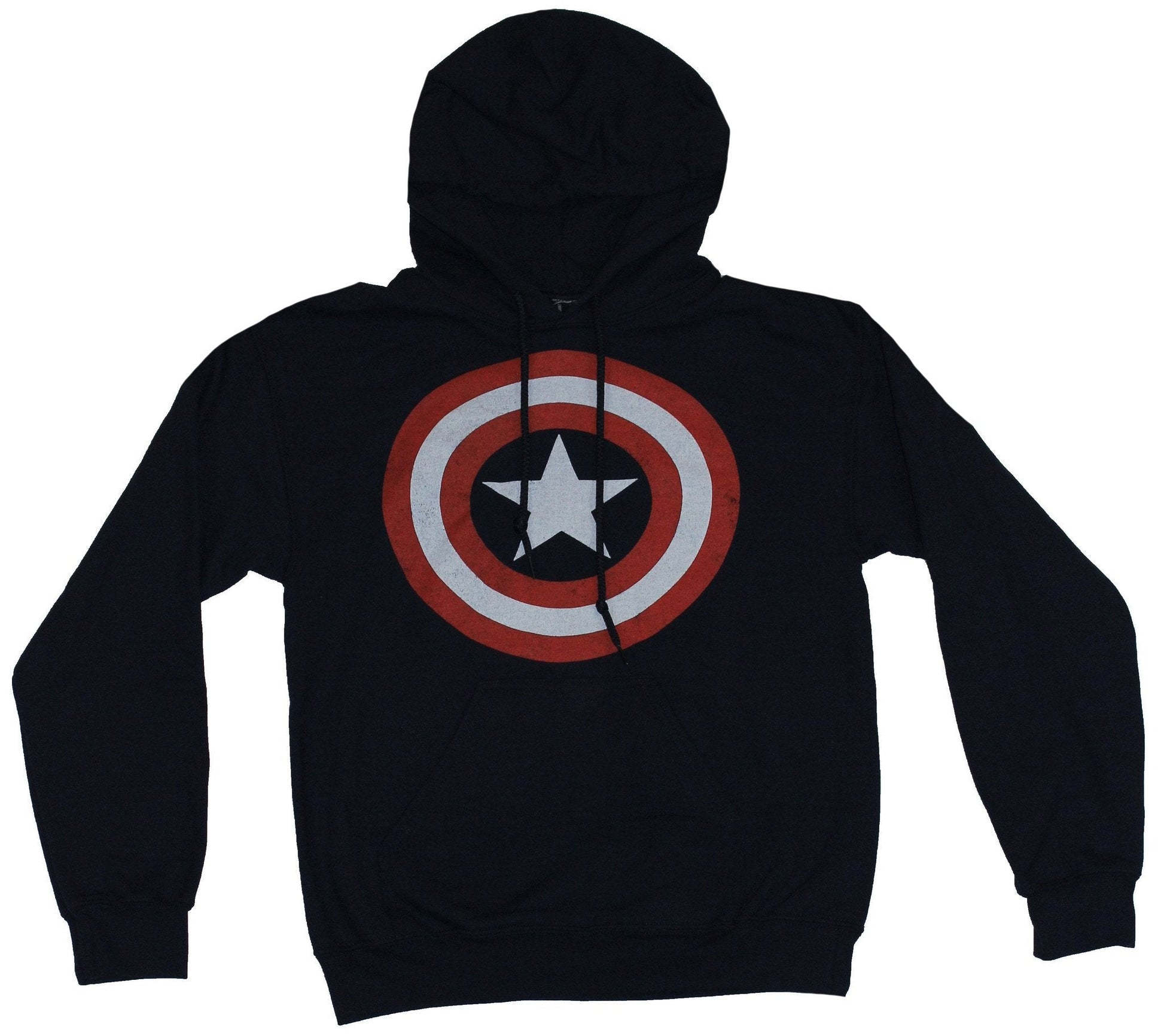 Captain America Mens Hoodie Sweatshirt - Classic Distressed Simplest Shield Logo