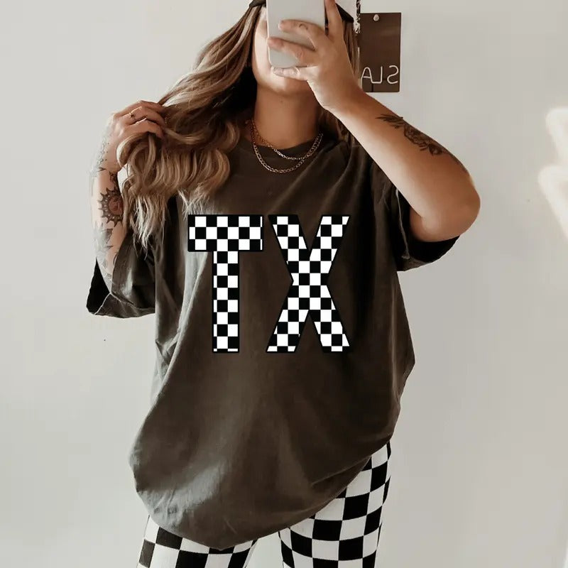 Checkerd Custom State Shirt, Comfort Colors, Checkerd Coquette Shirt, Women's Holiday Tee, Casual Comfy Graphic