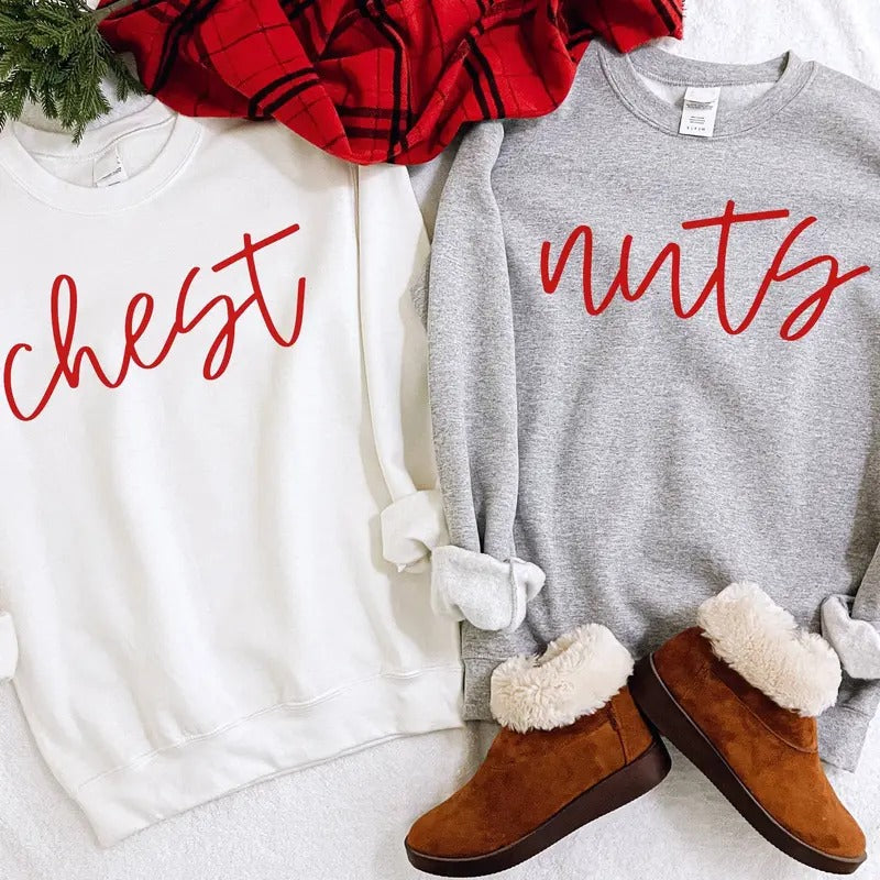 Chest Nuts Couples Christmas Swetashirt, Couples Christmas Shirt, Funny Christmas Shirt, Couples Christmas Sweatshirts, Winter Holiday Tee, Funny Saying Shirt, Girlfriend Boyfriend Christmas Gift Shirt