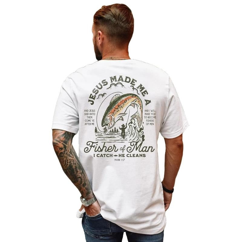 Christian Shirts for Men Christian T Shirts Fisher of Men Christian TShirts Menswear Top Underwear Human Streetwear Tropical Shortsleeve Crewneck Round Neck Casual Graphic