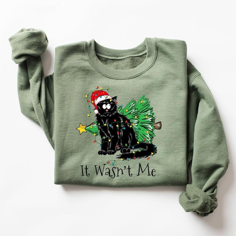 Christmas Black Cat Sweater, It Wasn't Me Shirt, Christmas Gift For Cat Lover, Xmas Holiday T-Shirt, Funny Black Cat Tee, Holiday Crewneck, Hoodie and Sweater; T-shirt