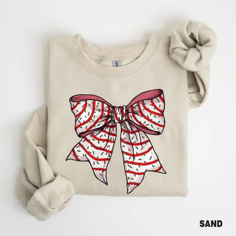 Christmas Cake Bow Sweatshirt, Coquette Christmas Shirt, Women's Holiday Shirt, Christmas Bow Sweatshirt for Women, Christmas Sweater