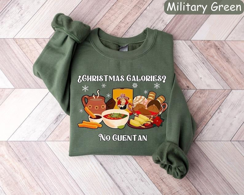 Christmas Calories No Cuentan Sweatshirt, Spanish Christmas Shirt, Holiday Sweaters, Feliz Navidad Shirt, Christmas Gifts, New Year Shirt, Hoodie and Sweater; T-shirt Cotton Menswear