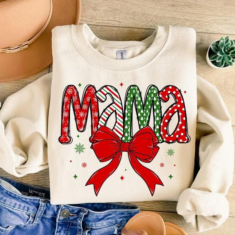 Christmas Coquette Bow, Christmas Mama Coquette , Mama Claus, Merry Mama, Candy Cane Santa Hot Cocoa, Retro Christmas, Retro Christmas Shirt, Winter Shirts, Christmas T- Shirt, Christmas Clothes, Christmas Vibes, Christmas Season
