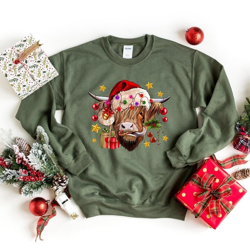 Christmas Cow Sweatshirt for Unisex, Cute Farm Christmas Shirt, Unisex Cotton Fabric - Classic Fit - Pullover Crewneck Hoodie