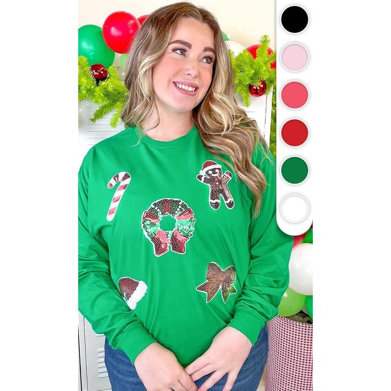 Christmas Things Sequin Graphic Long Sleeve T-Shirt