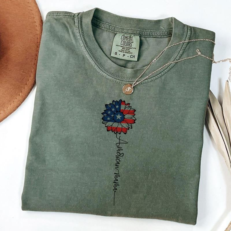 Comfort Colors American Mama Shirt, Mama T-Shirt, 4th Of July Shirt, Floral Mama Tee, Patriotic Mom Gift