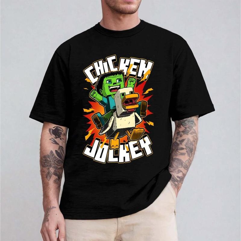 Comfort Colors Chicken Jockey T-Shirt, Funny Fire Chicken Minecraft Graphic Tee, 2025 Gift for Gamers, Trending Shirt for Minecraft Fans, Ultra Soft Cotton Tee, Everyday Casual Wear