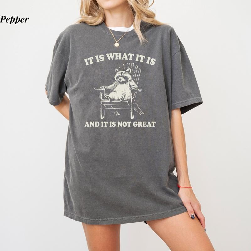 Comfort Colors It Is What It Is And It Is Not GreatT-shirt, Funny Raccoon Meme Tee, Retro Unisex Cotton T-Shirt, Nostalgic Cringe Meme Style for Raccoon Lovers