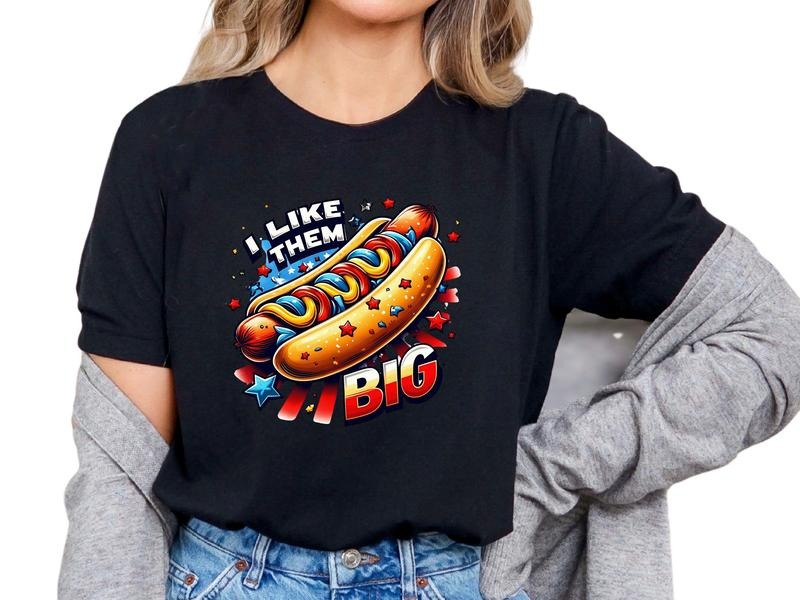 Comfortable I Like Them Big Unisex Sizing T-Shirt, July 4th Graphic Tee, Causal Indpendence Day Shirt, Sarcastic T Shirts for Women, 4th of July Shirts for Everyday Wear