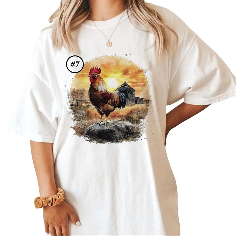 Custom Sunrise and Rooster Cute Chicken Watercolor Farm Yard Coop Graphics Unisex T-shirt Sweatshirt Hoodie Design all 1 Cotton Womenswear