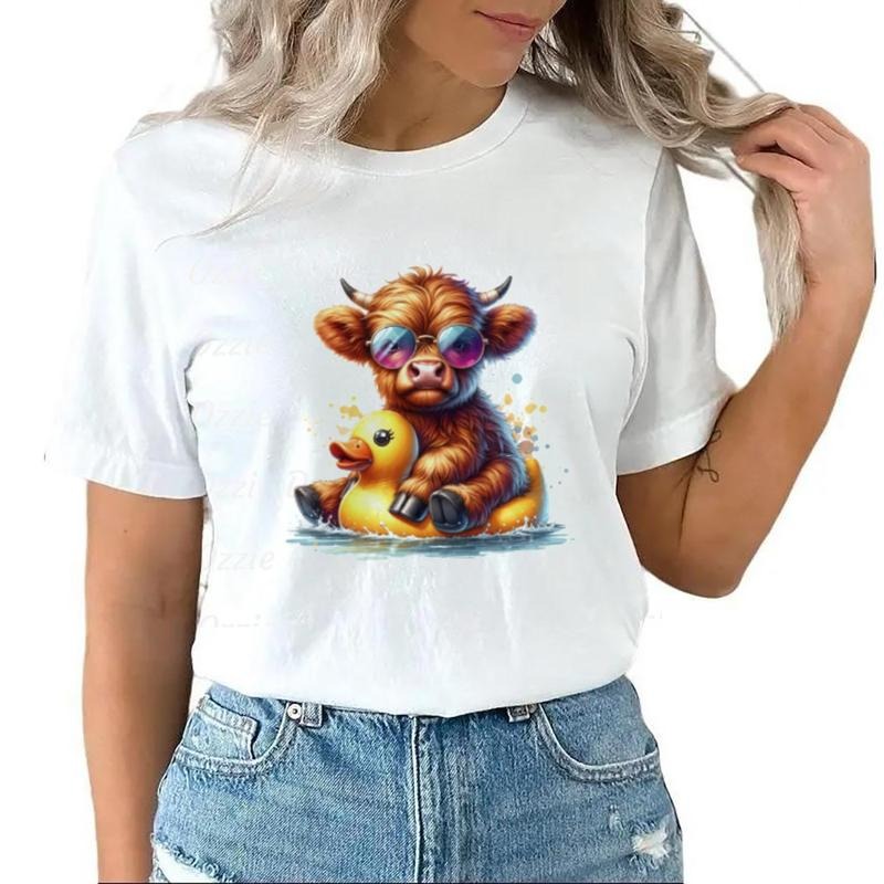 Cute Highland Cow T-shirt Rubber Duck Cow Summer Funny T-Shirt Unisex Hoodie Sweatshirt