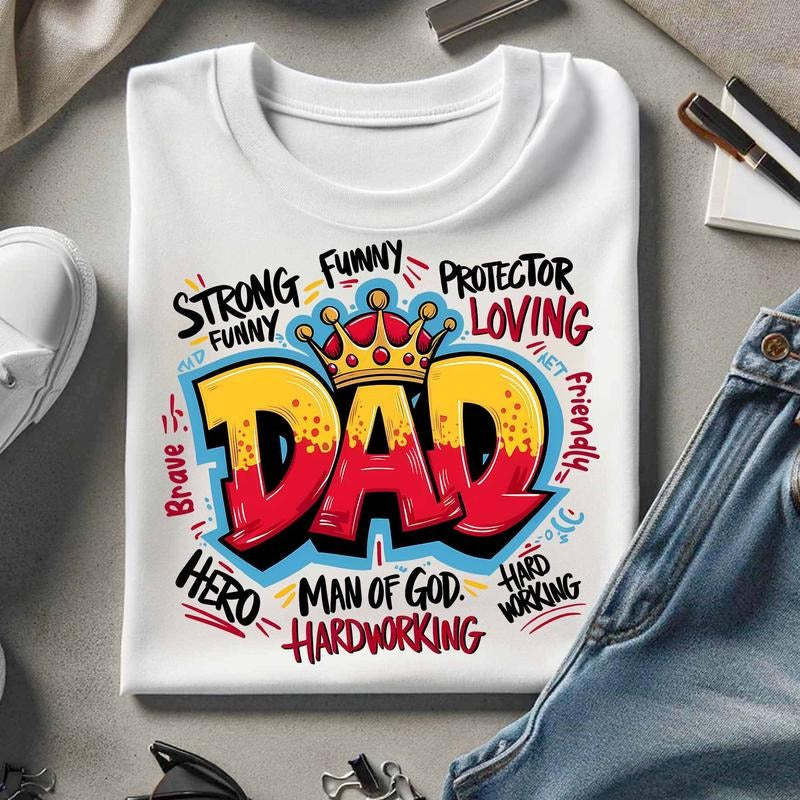 Dad Graffiti Shirt for Men Funny Hero King Man of God Father's Day Gift Unisex Premium 100% Cotton