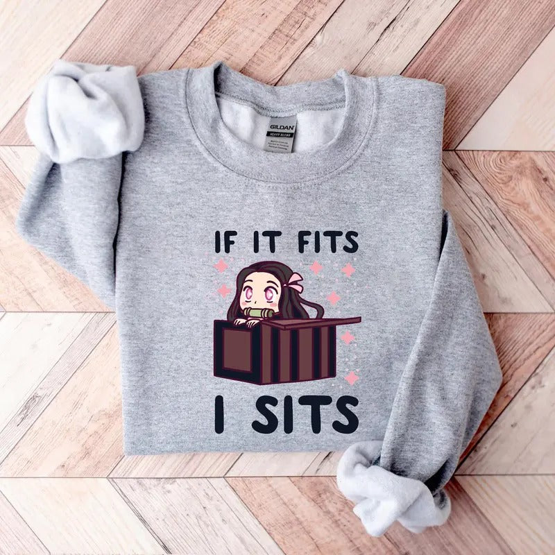 Demon Slayer Nezuko "If It Fits, I Sits" Sweatshirt Hoodie Sweatshirt, Hoodie, Comfort Colors