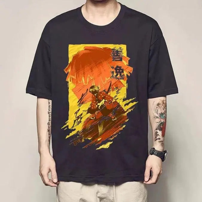 Demon Slayer: Zenitsu Agatsuma Action Pose T-Shirt, Manga Cosplay, Japanese Rising Sun Ray Art Painting, Kimetsu no Yaiba Y2k, Anime Slayer Destroy Retro Bootleg Hoodie, Gift For Fan Sweatshirt, Hoodie, Comfort Colors