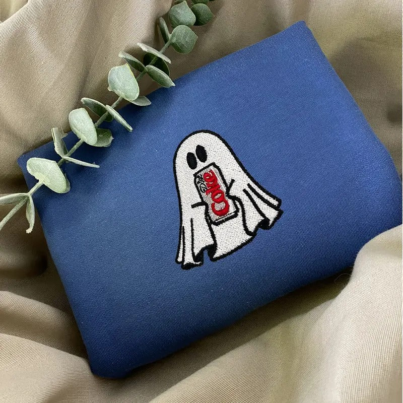 Diet Coke Ghost Embroidered Sweatshirt, I Need A Diet Coke, Funny Ghost, Soda Cola Drink