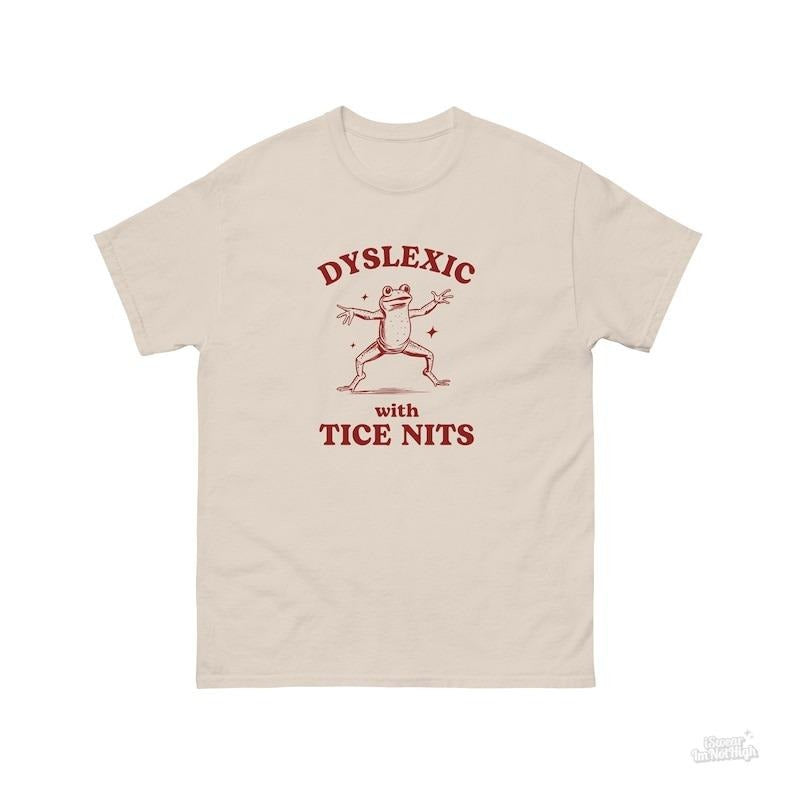 Dyslexic With Tice Nits, Funny Dyslexia Shirt, Frog T Shirt, Dumb Y2k Shirt, Stupid Vintage Shirt, Sarcastic Cartoon Tee, Silly Meme Shirt