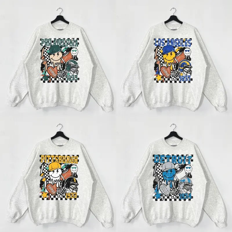 Football Crewneck Sweatshirt, Retro Football Sweatshirt in Ash Grey, Football Sweatshirts