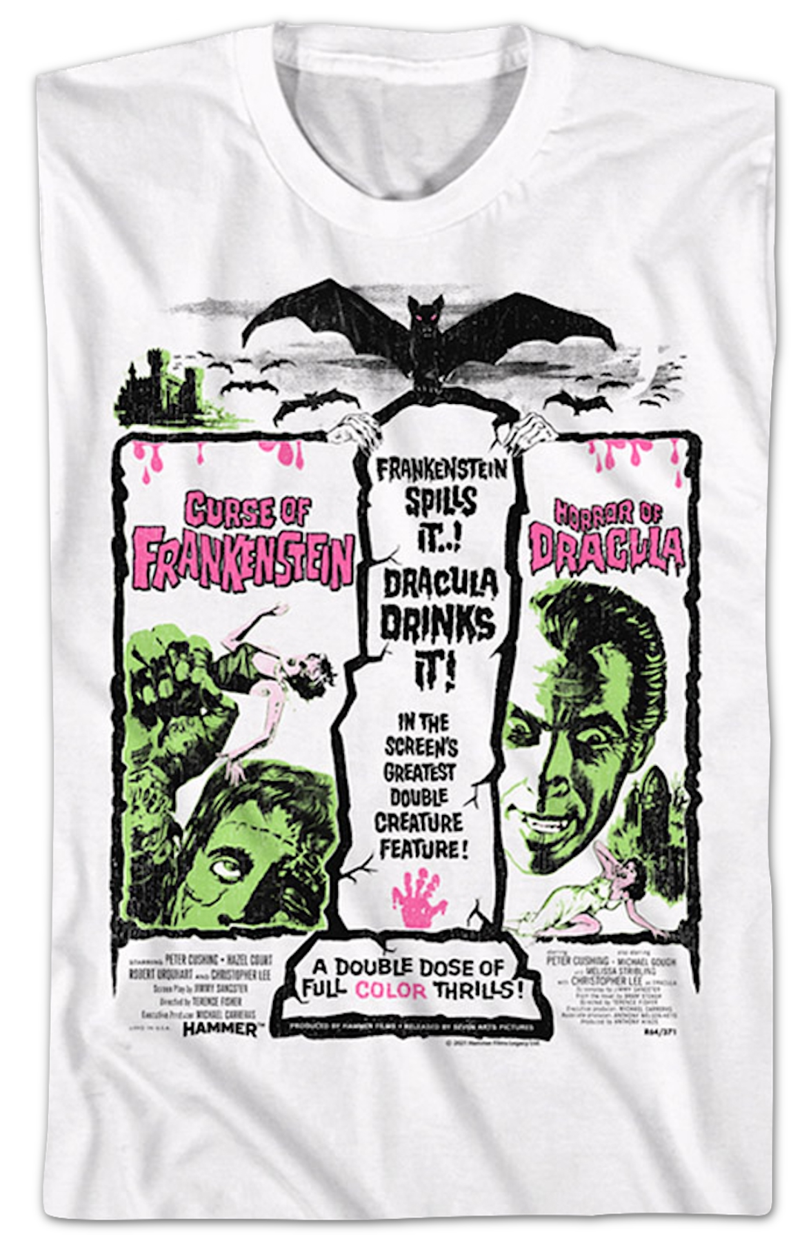 Frankenstein And Dracula Double Feature Poster Hammer Films T-Shirt
