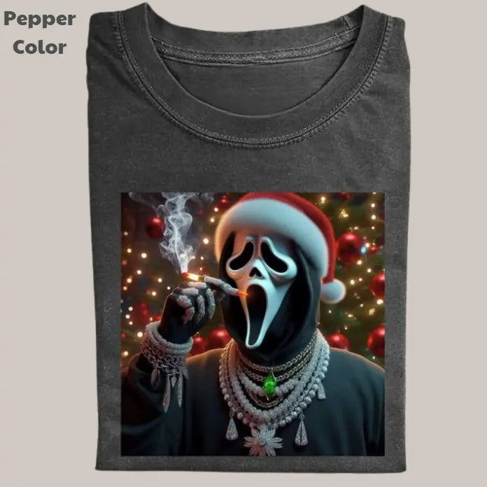 Funny Christmas Vintage Tee, Ghost Face Smoking T-Shirt, Movies Graphic Tee, Meme Cringe Funny Dumb Shirt, Menswear Womenswear Streetwear