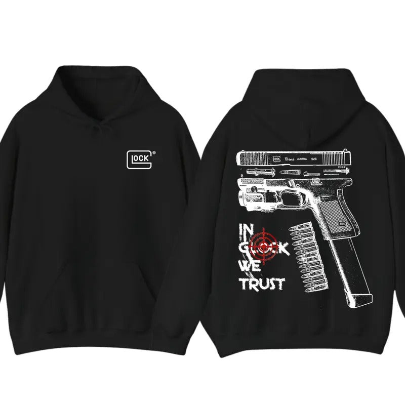 Glock Tshirt Hoodie IN GLOCK WE TRUST Tshirt Double Side T-Shirt Hot Trend for men for women