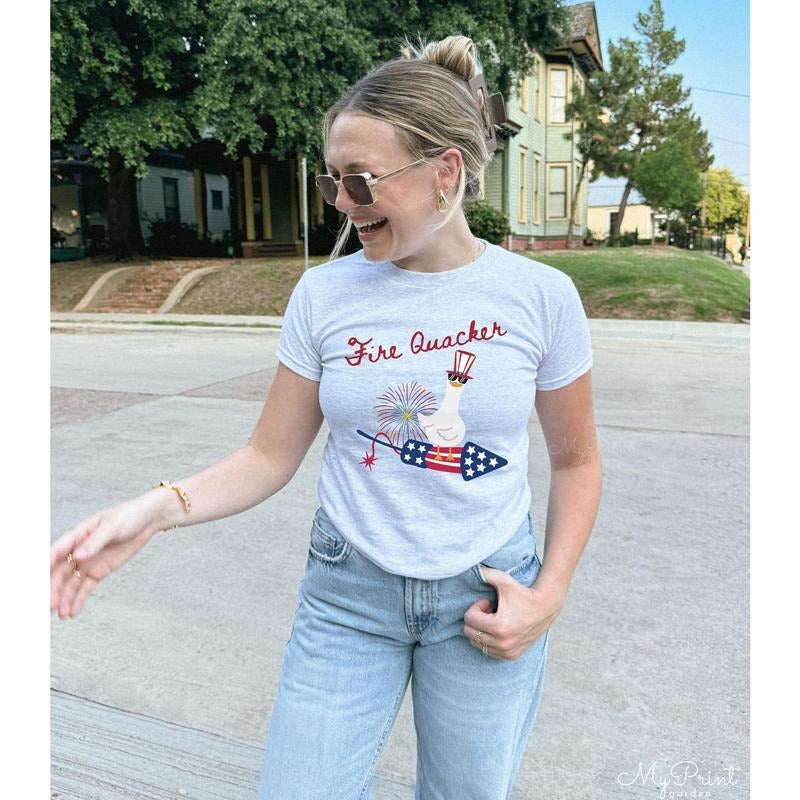 Goose Firequacker 4th Of July Baby Tee, Independence Day Y2K Shirt USA, Funny Fourth of July Baby Tee, Patriotic Shirt with American Flag