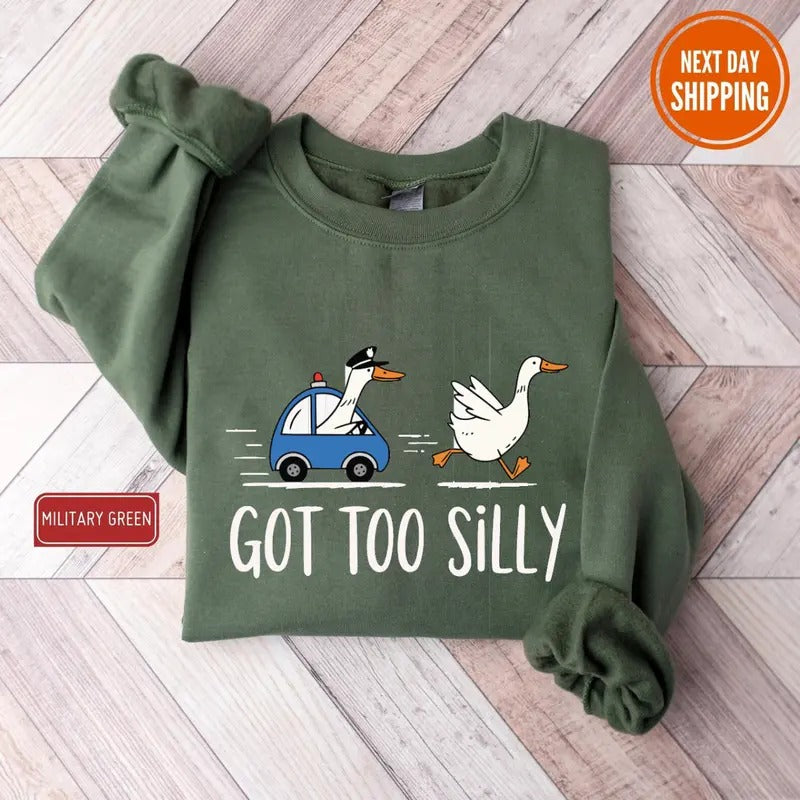 Got Too Silly Sweatshirt, Silly Goose Shirt, Funny Goose Tshirt Design, Serious Goose, Funny Men's Women's Sweater, Trendy College Hoodie