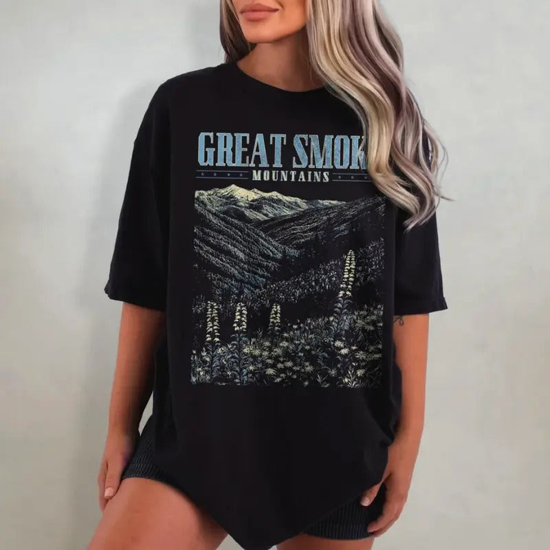 Great Smoky Mountains Shirt, Wildflower Washed T-Shirt, Retro Tennessee Tshirt, Oversized National Park Shirt, Nature Graphic Tee