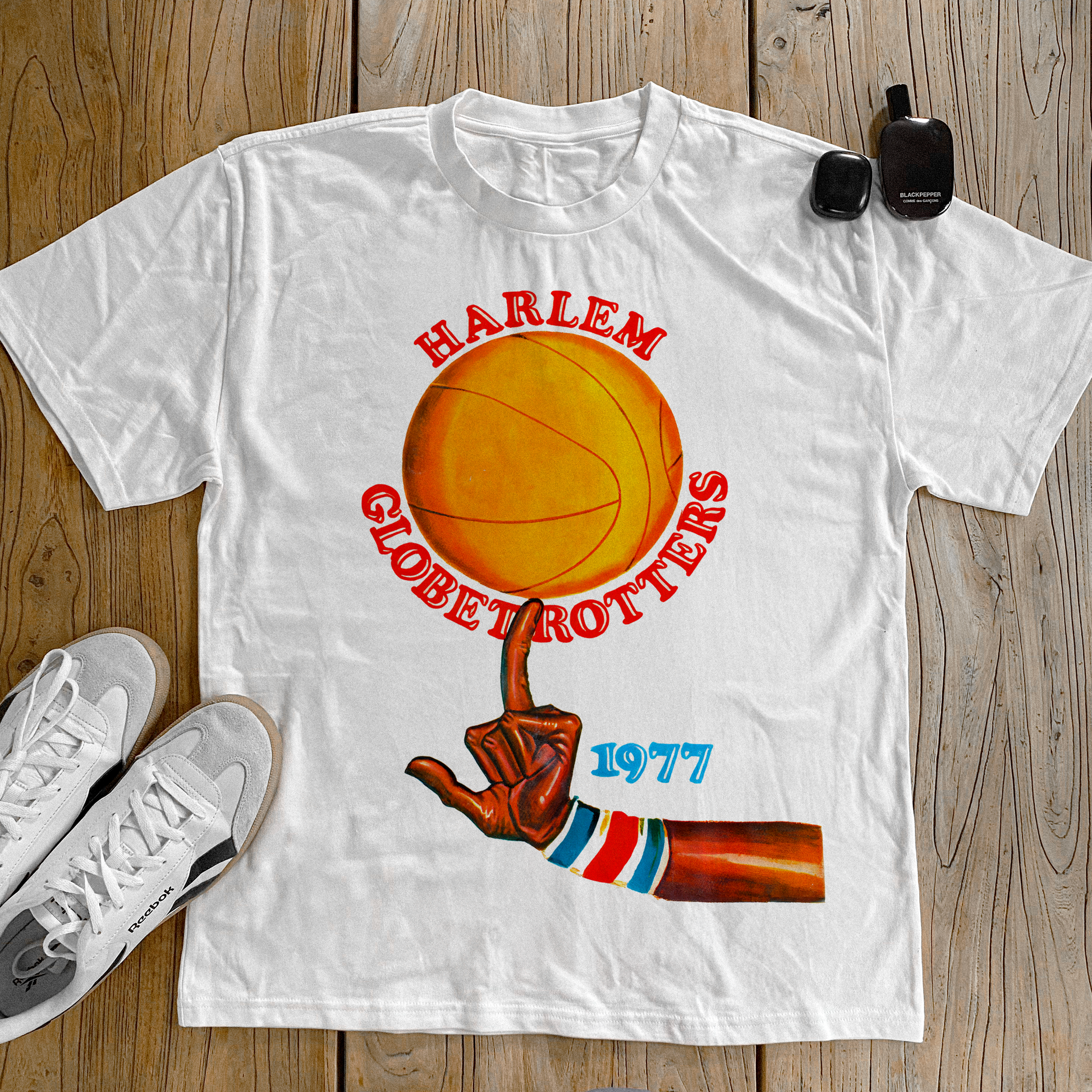 'HARLEM GLOBETROTTERS' 1977 HEAVY WHITE T-SHIRT
