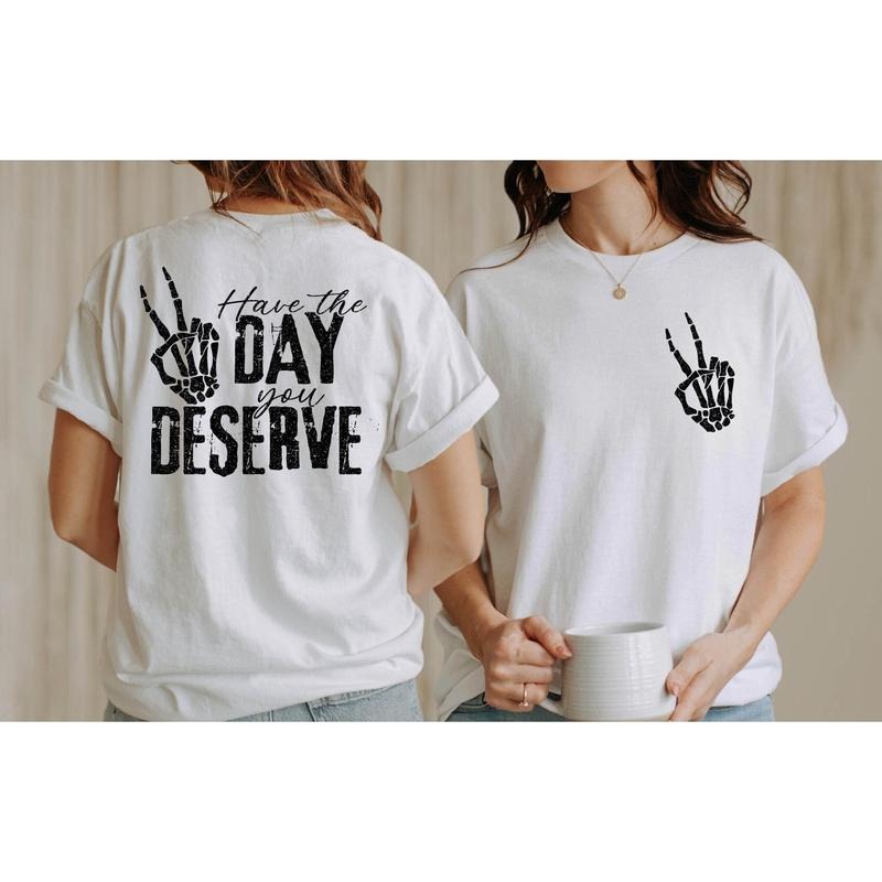 Have The Day You Deserve T-shirt Skeleton Hand Trendy Shirt Graphic Positive Vibes Shirt Motivational Giftinspirational Teegift For Her