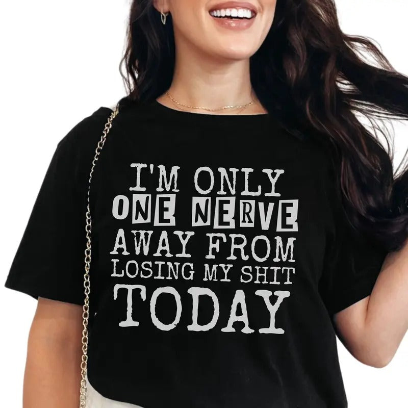 I Am Only One Nerve Away From Losing My Sh&t Today Unisex T-Shirt - Graphic Tees with Offensive Words, Sarcastic Shirt for Besties