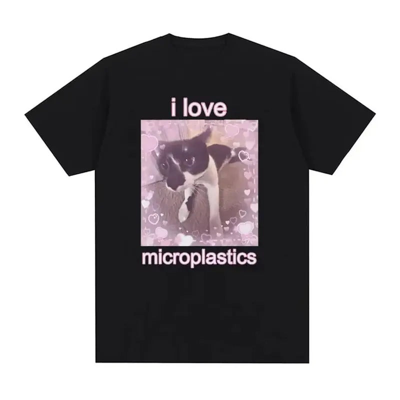 I Love Microplastics Cute Cat Meme Graphic T Shirts Funny Men Women Tops Cute Clothing T-shirt Casual Cozy Cotton Oversized Tees, Menswear Tshirt