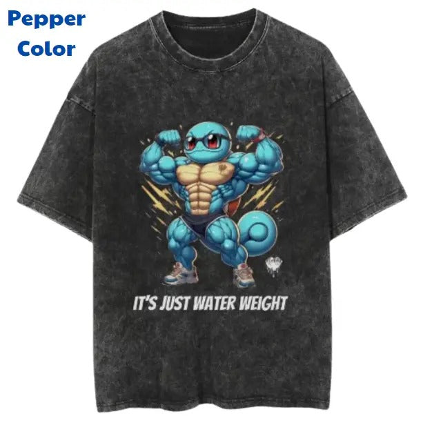 It's Just Water Weight Vintage Graphic Tees, Squirtle T-Shirt, Pokemon Anime Shirt, Unisex Gym T-Shirt, Gift For Men Women, Menswear Womenswear Streetwear