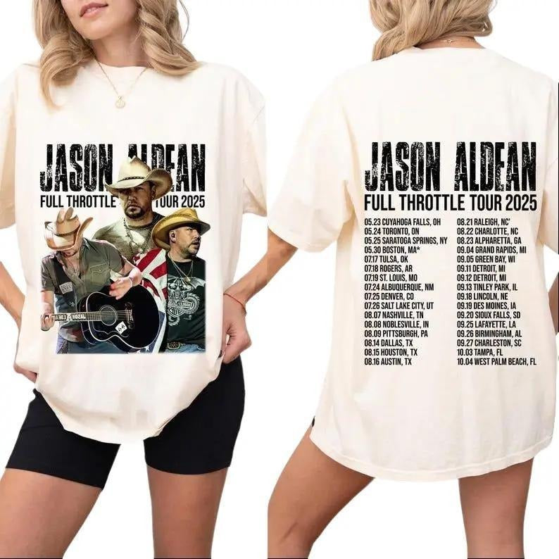 Jas0nn Aldean Full Throttle Tour 2025 T-Shirt, Retro 90s Tour 2025 Graphic Tee, Hot Hit Statement for Fans