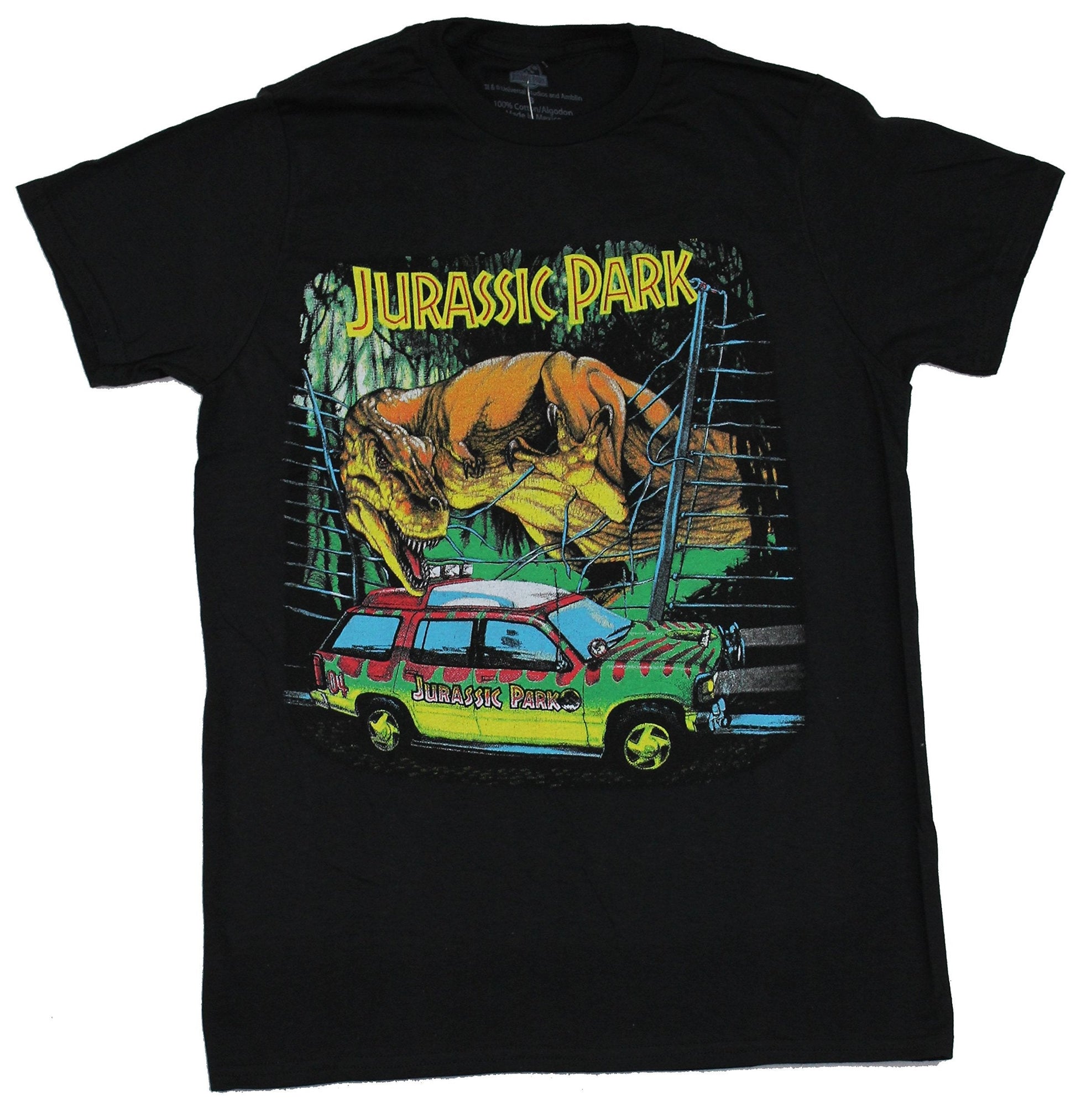Jurassic Park Mens T-Shirt - Dino Attacking Jurassic Park Tour SUV Iamge