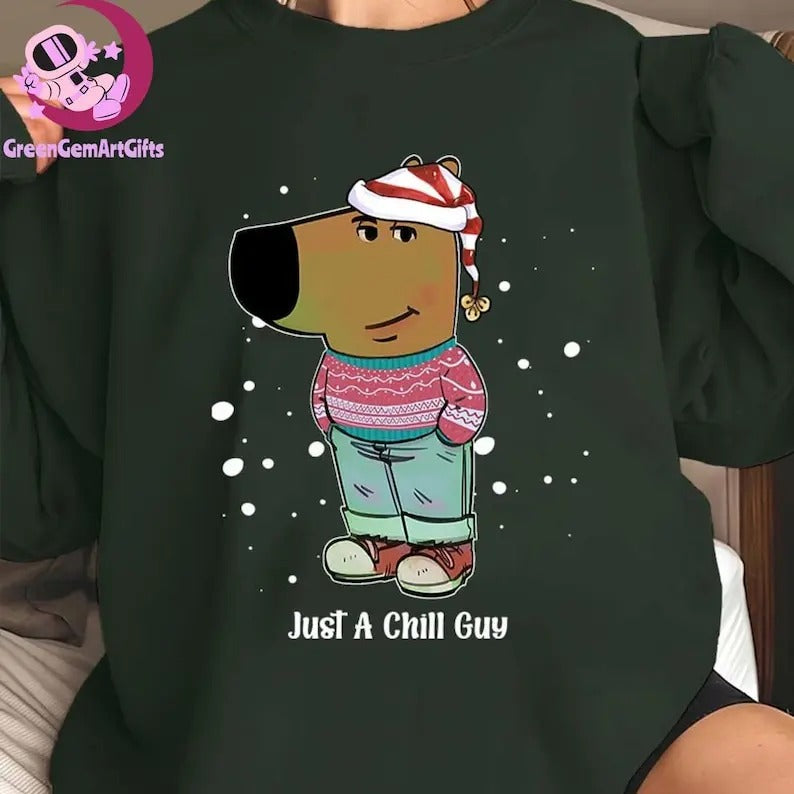 Just A Chill Guy Christmas Chilly Christmas Sweatshirt Y2K Christmas, Trendy Funny Meme Christmas