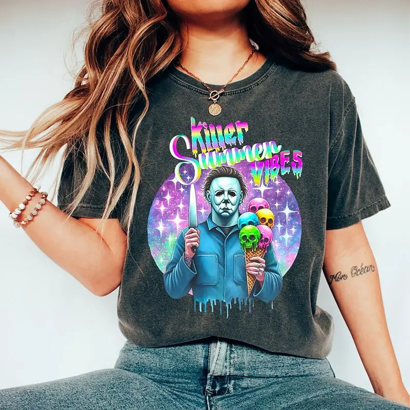 Killer Summer Vibes Shirt, Summerween Shirt, Michael Myers Ice Cream T-Shirt, Horror Summer Shirt, Horror Beach Tee, Beach Vacation Shirt, Funny Summer Times Tee, Horror Fan Summer Shirt