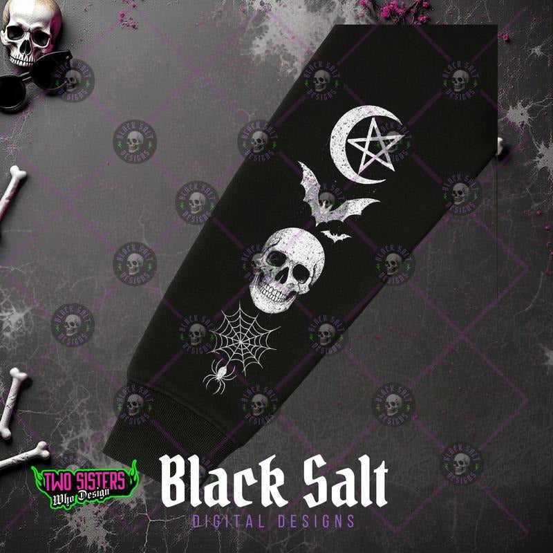 Let the Night Take Me Full Sleeve Graphic & Stay Wicked Pocket Graphic Halloween Spooky Sweatshirt T Shirt or Hoodie Vintage Grunge Aesthetic with Skulls Retro Vibes Casual Cotton Fit Women's Streetwear Style Graphic Crewneck Tops Made in USA