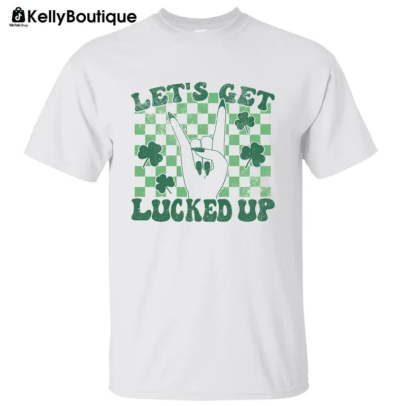 Let's Get Lucked Up Irish Shamrock St Patrick's Day Graphic Printed Unisex Classic Cotton T-shirt Sweatshirt Hoodie