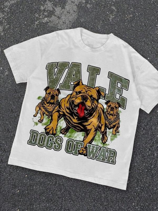 Men's Cartoon Dog Print Round Neck Tee, Regular Fit Casual Short Sleeve T-shirt, Men's Summer Top for Daily Wear, Tropical