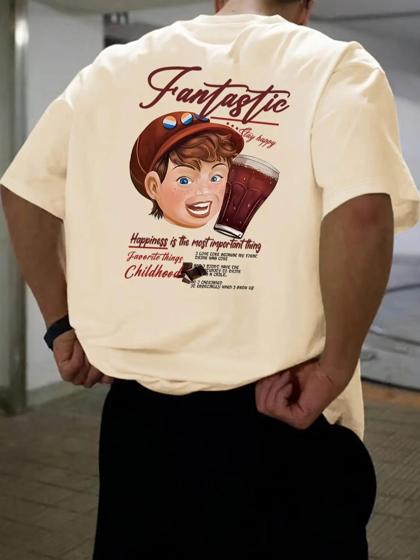 Men's Cartoon Figure Graphic Print Round Neck Tee, Regular Fit Casual Short Sleeve T-shirt, Men's Summer Top for Daily Wear