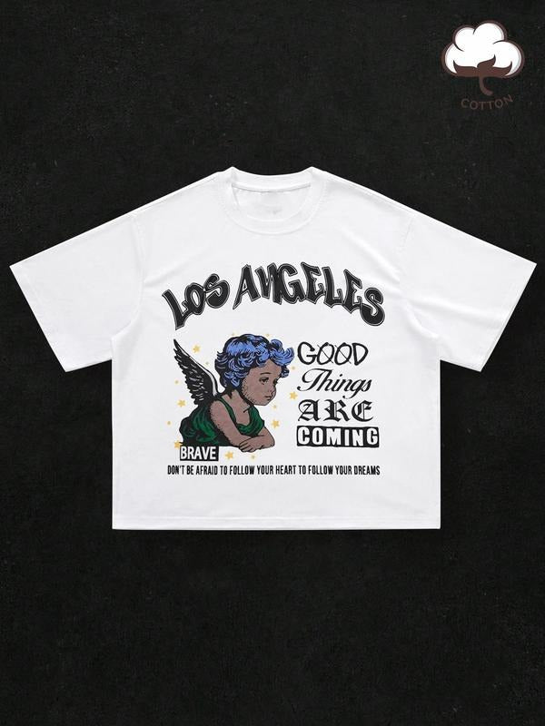 Men's Cartoon Girl Graphic Print Round Neck Tee, Regular Fit Casual Fashion Short Sleeve T-shirt, Men's Summer Top for Daily Wear, Tropical, Cotton