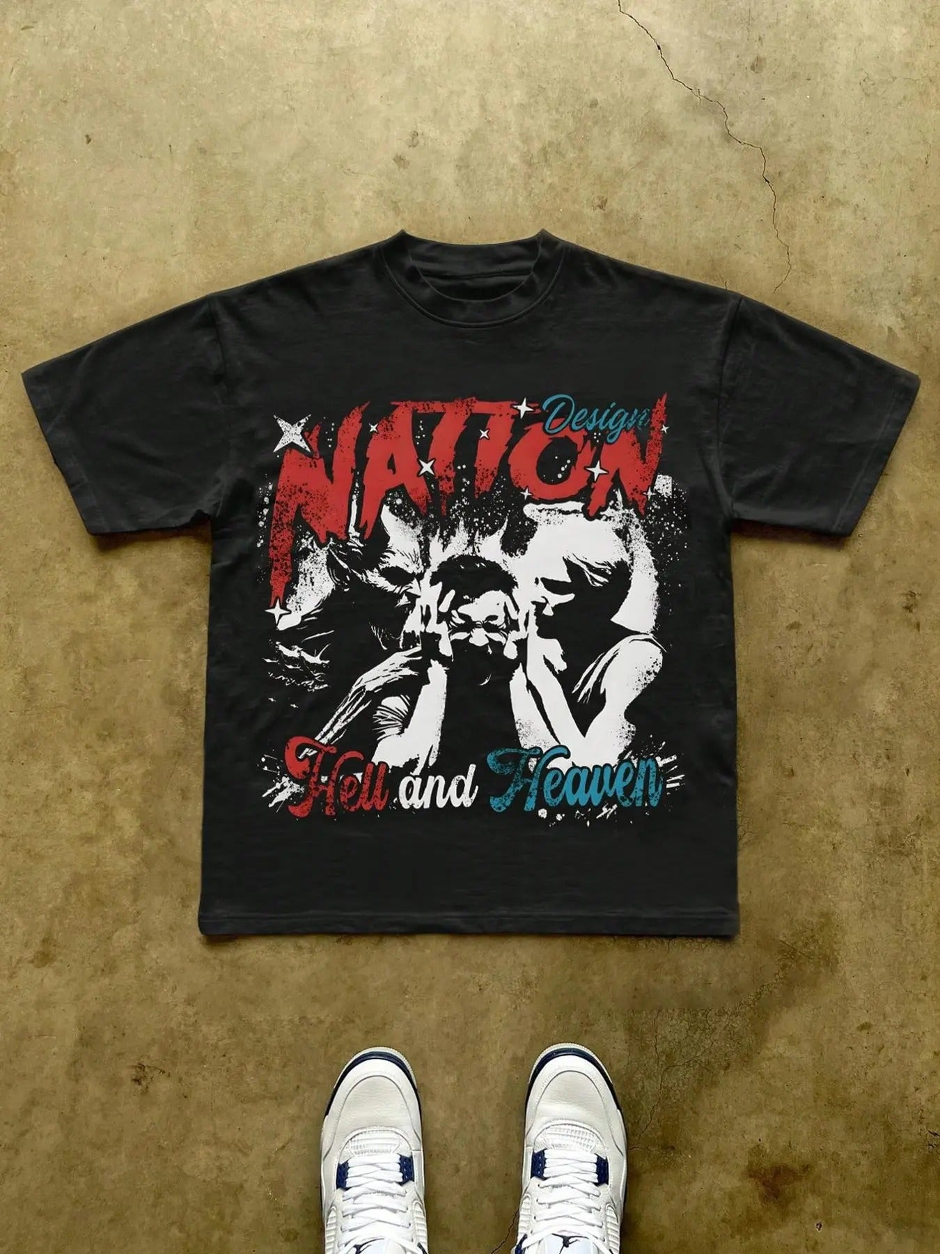 Men's Hell and Heaven Graphic Print Round Neck Tee, Regular Fit Casual Short Sleeve T-shirt, Men's Summer Top for Daily Wear, Tropical